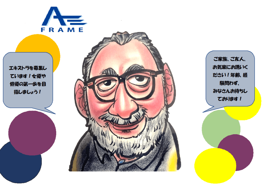 エキストラ募集中! 登録までの流れ 下記アドレスよりご連絡頂いましたら登録日の日程調整を行います。 登録は事務所で行います。 【持ち物】 ・印鑑 ・写真付き身分証明書 ・銀行口座が確認できるもの edi@a-frame.jp までご連絡下さい! 共有: クリックして X で共有 (新しいウィンドウで開きます) X Facebook で共有するにはクリックしてください (新しいウィンドウで開きます) Facebook いいね 読み込み中…